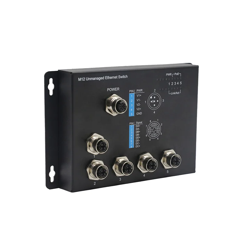 - PoE models provide Ethernet M12 ports with 4/8 IEEE 802.3at/af PoE ports. It providesupto30 watts of power per port, and can be used for IEEE 802.3at/af compliant powereddevices(PDs), such as IP cameras, wireless access points, and IP phones